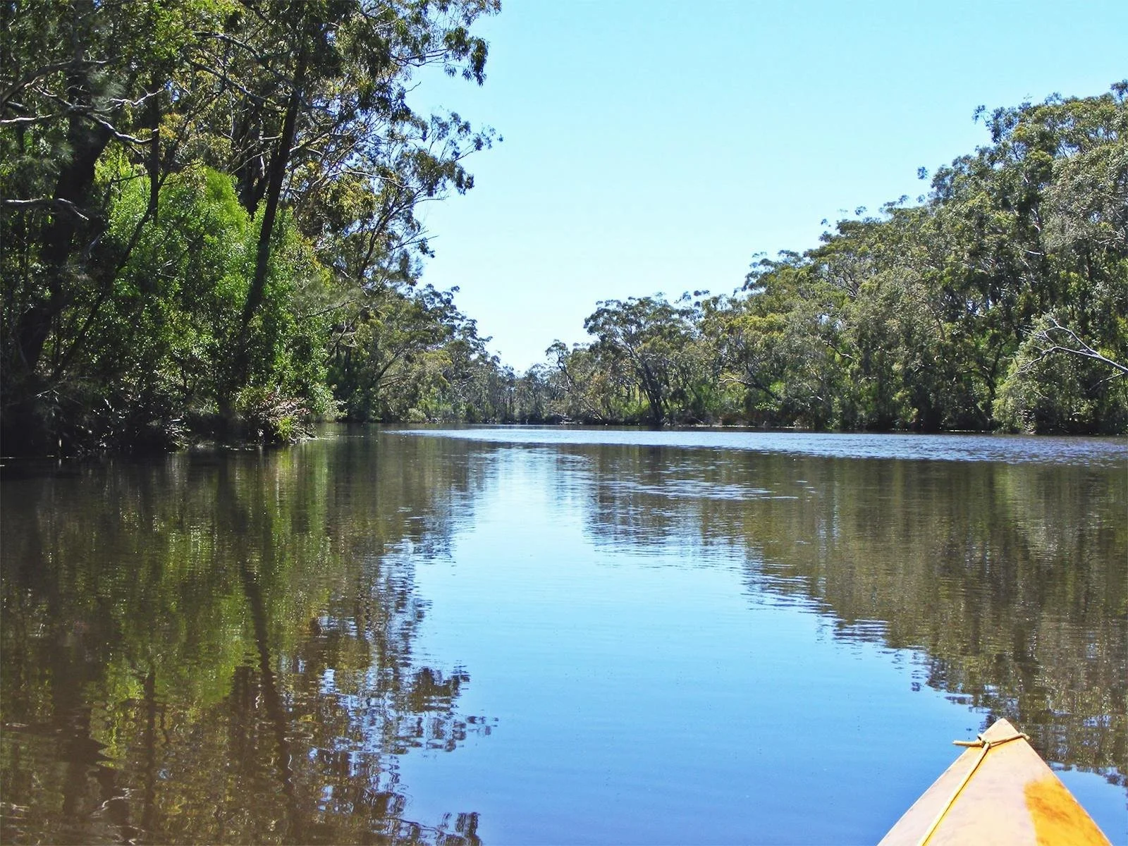 A peaceful section of the river, perfect for a relaxed paddle in either direction.